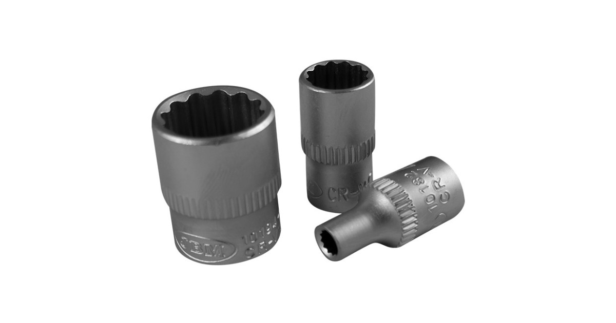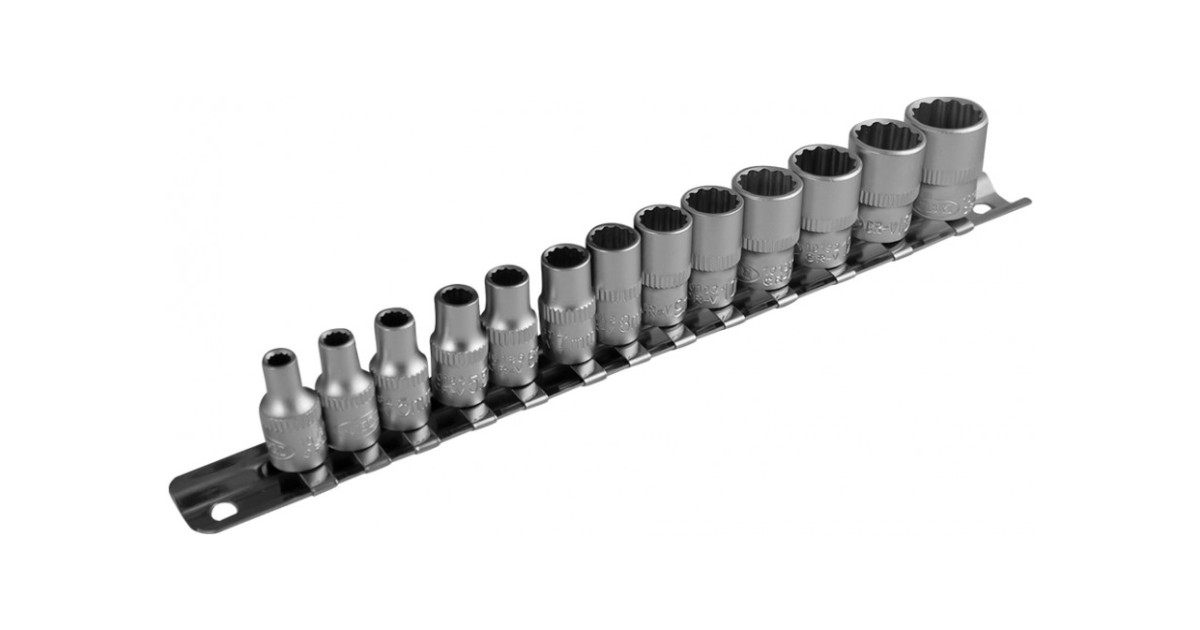 12-kant profiiliga 1/4" padrunite komplekt. CrV eriterasest. Matallsiinil.