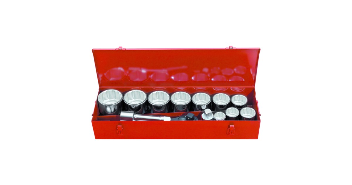 Tugevas teraskohvris 12-kant profiiliga padrunite komplekt. Mõeldud kasutamiseks tööstuses ja rasketehnika remondil.
