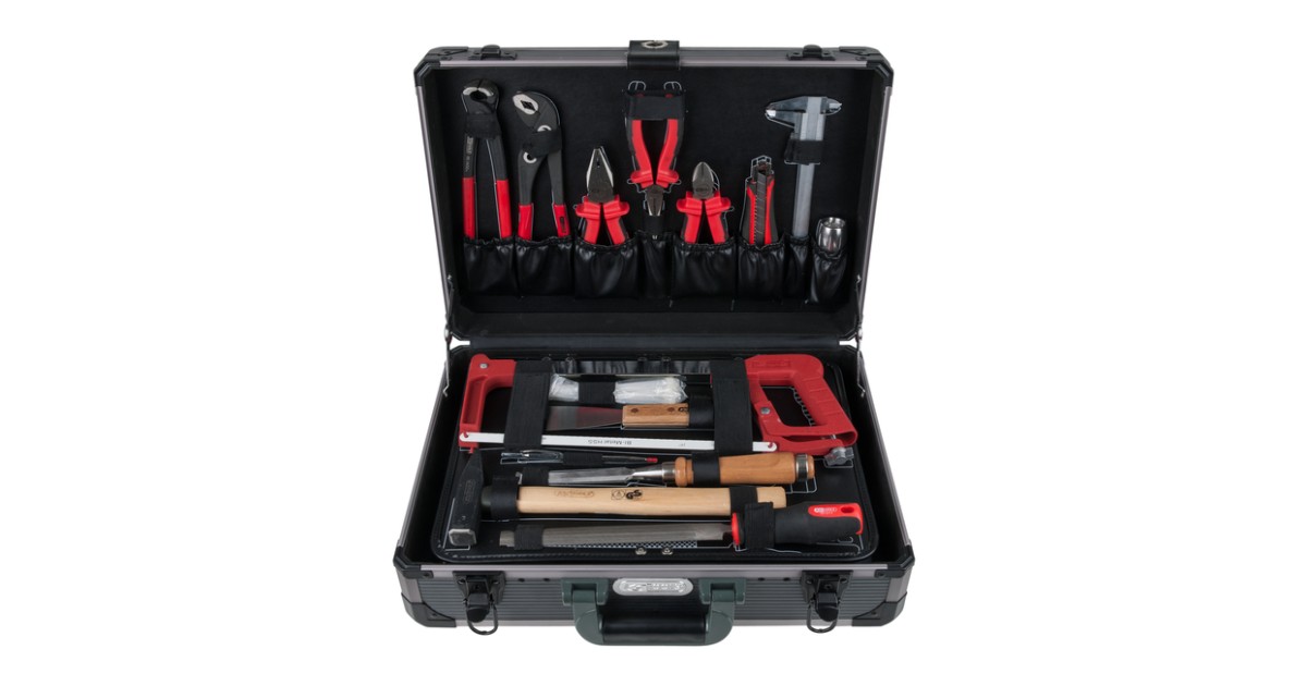 Mitmetasandiline tööriistakomplekt. lisaks autonduse/tööstuse tööriistadele ka majapidamises enamvajaminevad tööriistad. Ideaalne komplekt paigaldustehnikutele. kodumajapidamisse. suvilasse jne. Alumiiniumkohver.