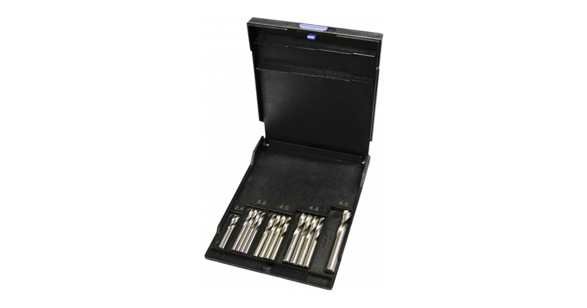 HSS kiirlõiketerasest needipuurid.Komplekt sisaldab:Needipuur 2.4-3.2-4.0-4.8-6.4 mm