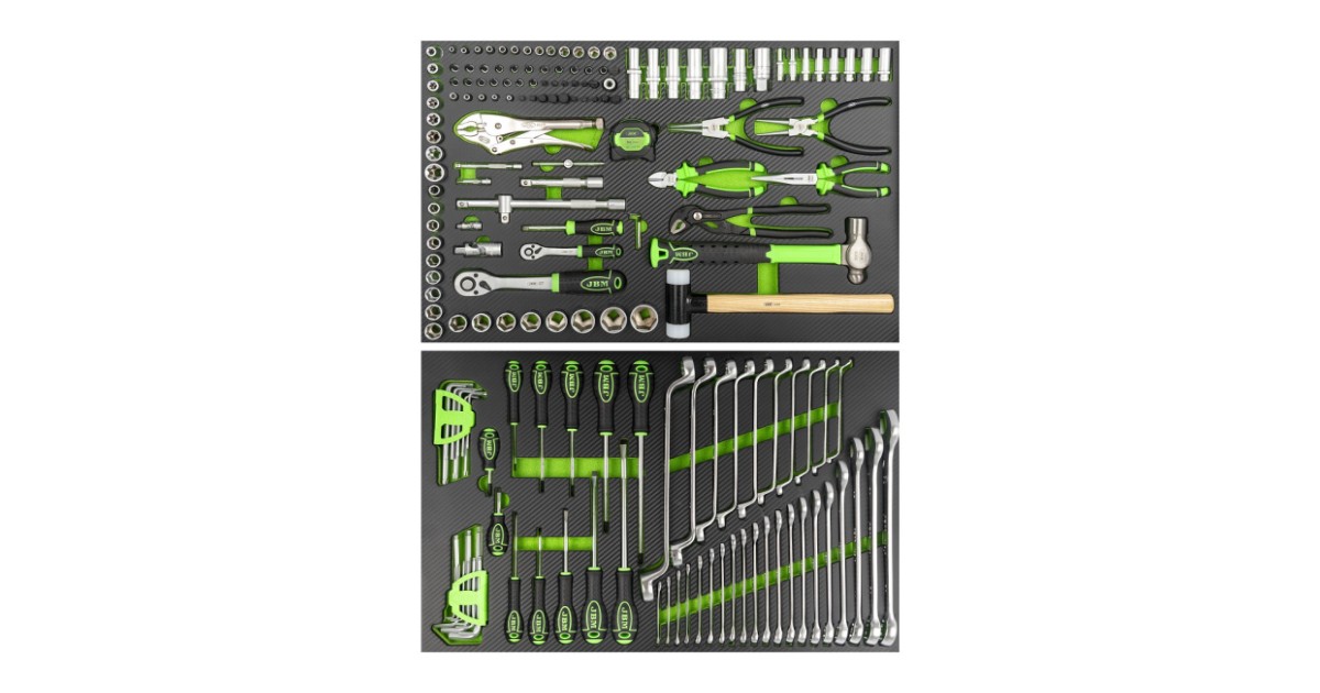 Tööriistadega täidetud kahest paneelist koosnev komplekt. mis sisaldab kõike vajalikku lihtsamate tööde teostamiseks. Paneelides on padrunid. padrunotsikud. kruvikeerajad. L-kuuskandid ja -torxid. silmus-silmusvõtmed. silmus-lehtvõtmed ning näpitsad. Paneeli mõõdud 715x470x45 mm.