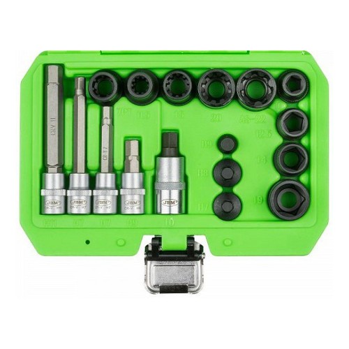 Komplekt sisaldab meie regioonis kõiki enamlevinud pidurisadula kinnituspoltide/mutrite avamise võtmeid. Täiesti möödapääsmatu komplekt igasse autoremonditöökotta! Sellele lisaks. võtmed korralikus plastkarbis ja ei lähe kaduma!