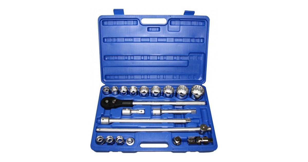 Sisaldab kõik enamvajaminevad mõõdud. 12-kandiga padrunid. Tugevas plastkohvris.Komplekt sisaldab:3/4” padrun. lühike 19-21-22-23-24-26-27-30-32-34-36-38-41-46-48-50 mm 3/4” tirrvõti (keelreevers. padrunilukusti)3/4” pikendusvars 100-200-400 mm3/4” T-käepide