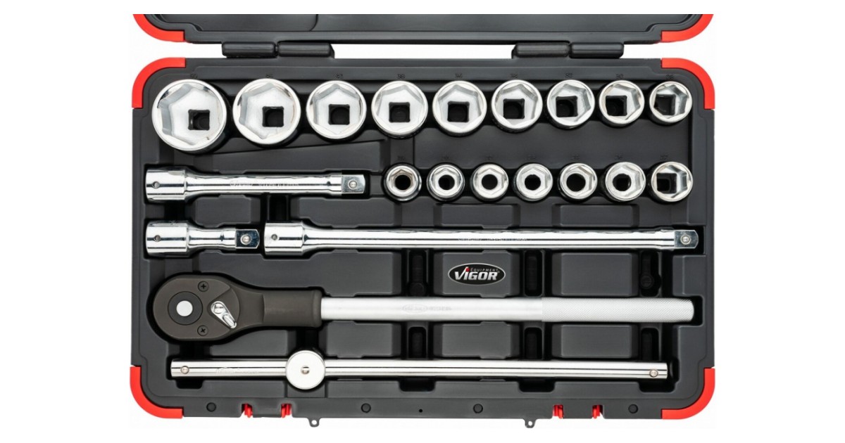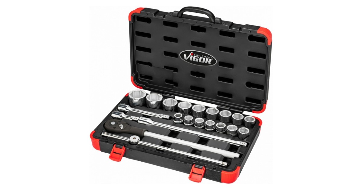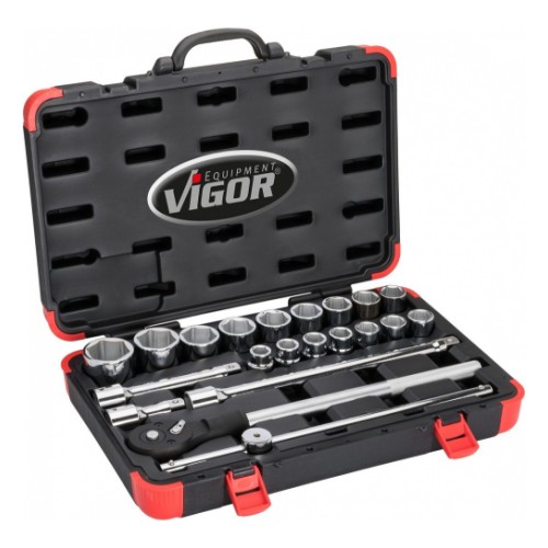 VIGOR Steckschlüssel Satz V2318N on 21-osaline padrunite komplekt. Tööriistad on valmistatud CrV eriterasest. Tööriistad on poleeritud pinnaga. tagamaks kerge puhastatavuse. Tööriistad on vastupidavas plastkohvris. Kohvri mõõdud 540x345x118 mm. Soovitame VIGOR´it professionaalidele. kes hindavad erg...