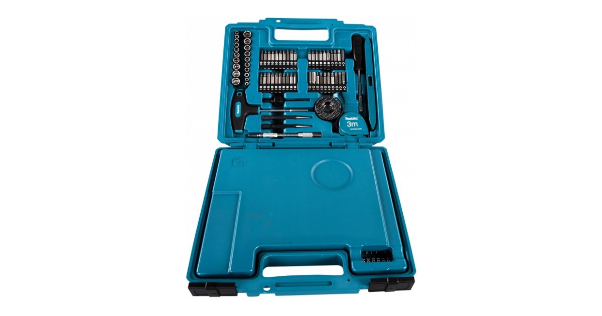 Põhjalik tarvikute komplekt. mis sisaldab enamlevinud kruviotsikuid (pikkusega 25 ja 50 mm). metalli-. müüritise- ja puidupuure ning lameda peaga kuusnurkseid puure. Augufrees (32. 38. 44. 54 m) padrunid. tsentreerimispuurid ja sügavusepiirajad. Kipsplaadi puuriotsik. magnetiline otsahoidik. L-kujuline kuuskantvõti 2.5 mm. pliiats 250 mm. paindlik otsahoidik 150 mm. kruvikeeraja. mõõdulint 3 m. vesilood. magnetkruvikeeraja.