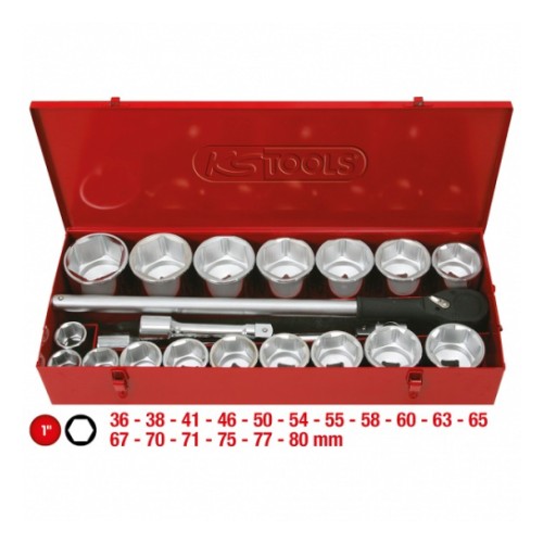 6-kant profiiliga padrunite komplekt. Kasutamiseks tööstustes. rasketehnika remondil. metsanduses. põllumajanduses jne. Tugev teraskohver. Komplekt sisaldab:1" padrun 36-38-41-46-50-54-55-58-60-63-65-67-70-71-75-77-80 mm1" pikendused 200-400 mm1" adapter T-saba moodustamisekstorukäepide 540 mm1" tir...