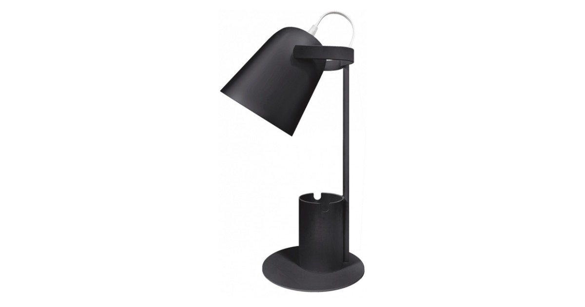 Lüliti ja integreeritud praktilise pliiatsitopsiga laualamp. kuhu saab mugavalt paigutada kirjutusvahendid. Metallist jalaosa ja kuppel. Jalaosa all olevad pehmendused kaitsevad lauda kriimustuste eest. Reguleeritav kaelaosa valgusvihu soovitud suunamiseks. Disainitud LED valgusallikale. max 25 W (tuleb eraldi juurde osta).