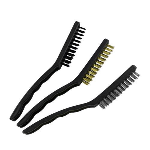 Plastpidemega täppis terasharjade komplekt. 225 mm pikkused. Komplektis terasest. nailonist ja messingist harjastega harjad. Ideaalne autonduses mootori. pidurite jne puhastamisel.