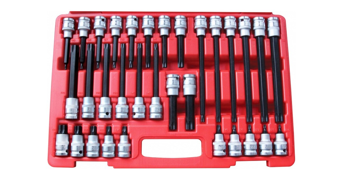 32-Os. 1/2" Torx Padrunotsikute Kompl. Pikad+Lüh. T20-T70 Triumf