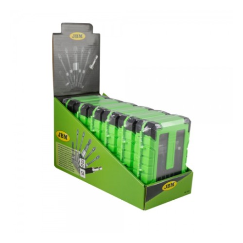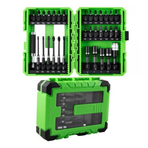 Mugavas plastkohvris S2 terasest valmistatud otsikute komplekt. Sisaldab 25 mm lühikesed ja 75 mm pikad otsikud. Sellele lisaks padrunid 6-7-8-10 mm. 60 mm pikkune 1/4" otsikute kiirpadrun ja 80 mm pikendus.