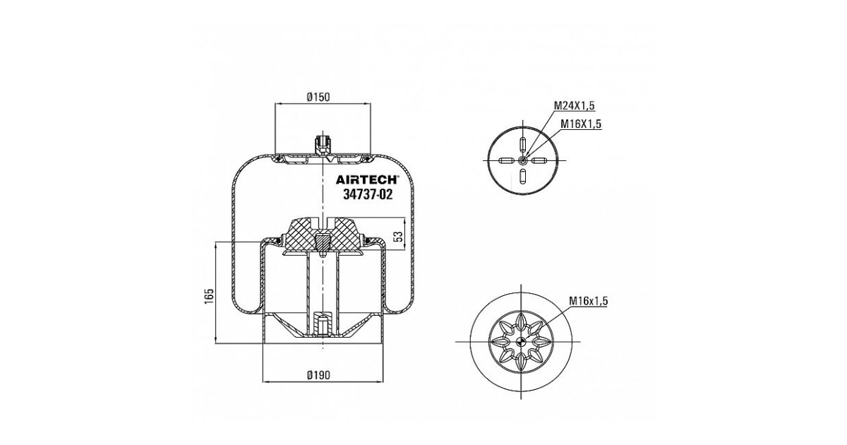 34737-02K Airtech Kompl.õhkpadi 190Mm Põhi Mb Actros Abisild Voss230