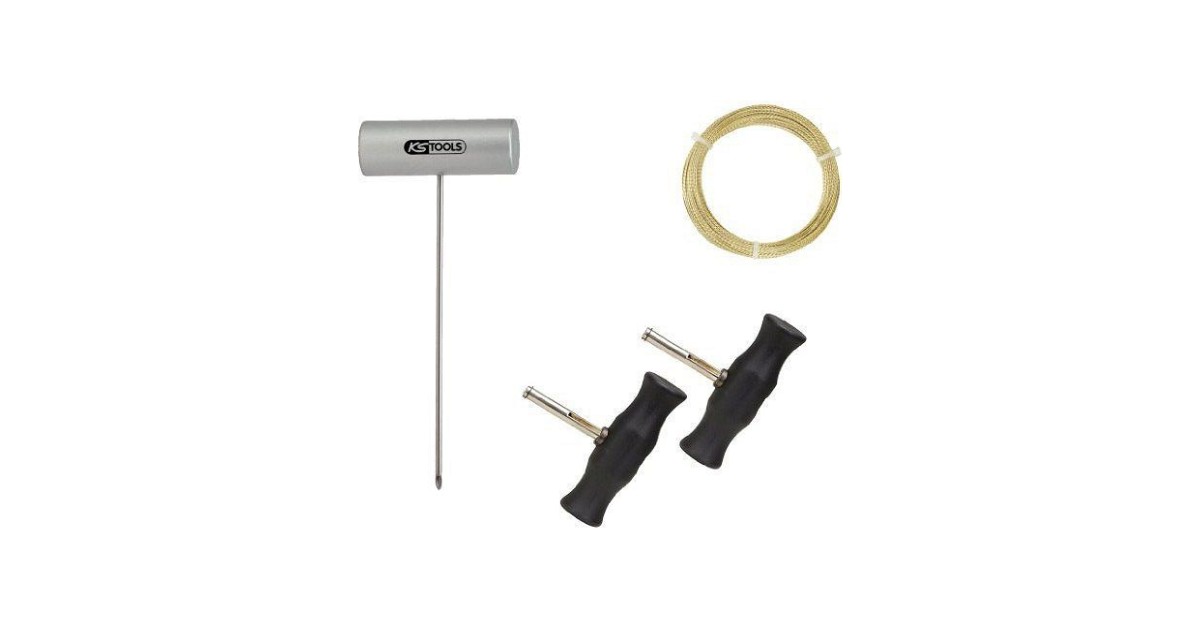 Klaasilõikamise komplekt töötab sae põhimõttel. Terastorust õõnesnõelaga. Sobib väga hästi laiade ja kõvade liimiribade läbistamiseks. Komplektis: lõiketraadi sond T-käepidemega 125 mm. tõmbekäepidemete komplekt. lõiketraat 22.5 m rullis.