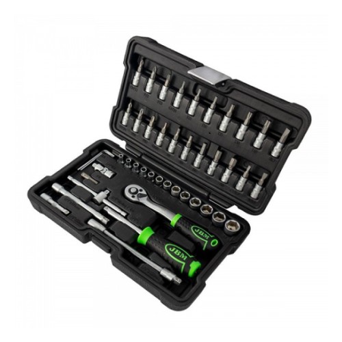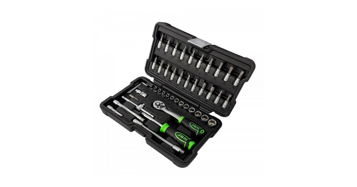 Korralik 1/4" padrunite ja padrunotsikute komplekt. Võrreldes paljude teiste tootjatega. sisaldab JBM komplekt ka padrunite keeramise T-võtit. Tirrvõti 72H on offset-komposiitkäepidemega. mis hõlbustab selle kasutamise. CrV eriteras. Matt pinnatöötlus. Uue põlvkonna tugevas plastkohvris.