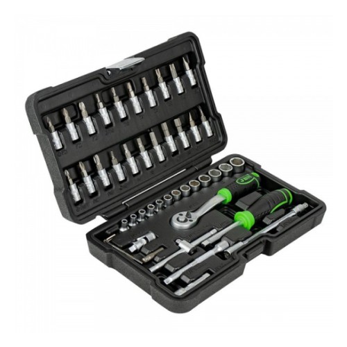 Korralik 1/4" padrunite ja padrunotsikute komplekt. Võrreldes paljude teiste tootjatega. sisaldab JBM komplekt ka padrunite keeramise T-võtit. Tirrvõti 72H on offset-komposiitkäepidemega. mis hõlbustab selle kasutamise. CrV eriteras. Matt pinnatöötlus. Uue põlvkonna tugevas plastkohvris. Komplekt si...
