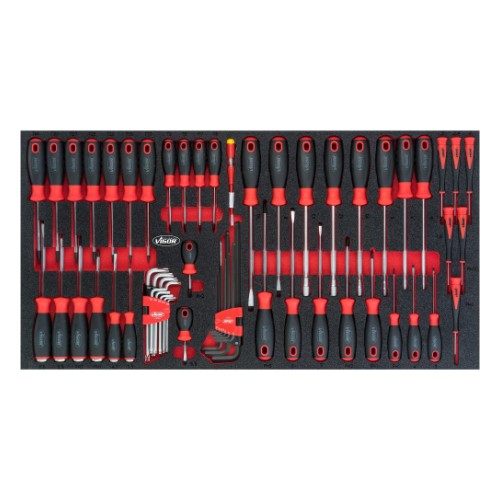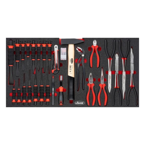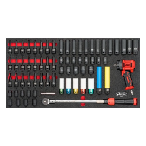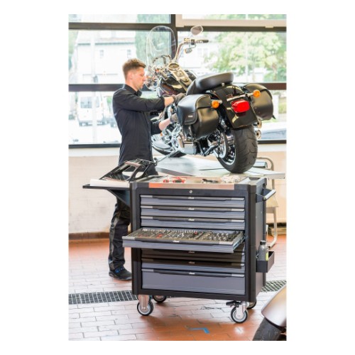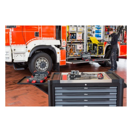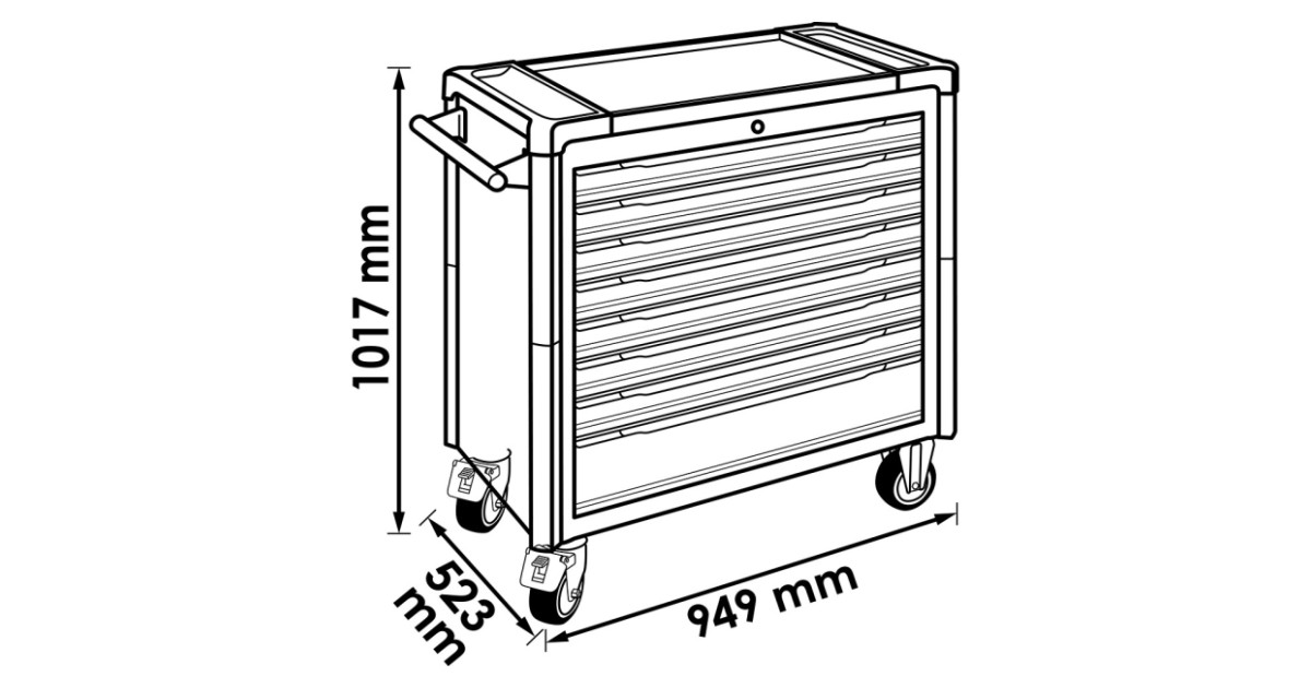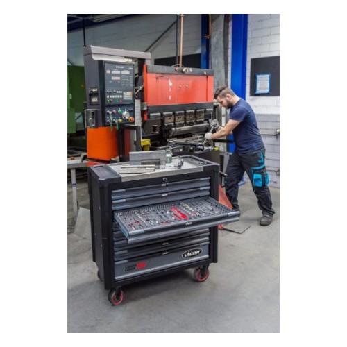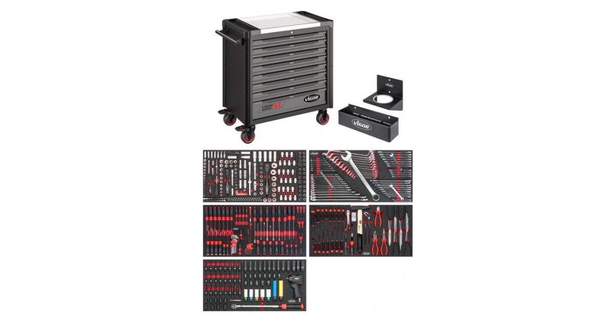 VIGOR Series XL 466-osaline tööriistakäru sisaldab täisvalikut tööriistu. millega on võimalik teostada ka keerulisemaid tehnika hoolduse- ja remonditöid. Tööriistakäru on tavakärudest laeim (949 mm) ja sügavam (523 mm). Tööriistad on poleeritud pinnaga. tagamaks kerge puhastatavuse. Tööriistade PU-paneelid on 2-värvilised. Käru pealisosas on roostevabast INOX-terasest. Kärul on 8 sahtlit. millest 7 sahtlit on 75 mm kõrgused ja üks sügavam 154 mm mis mõeldud suuremate tööriistade hoidmiseks (suruõhutööriistad. akutööriistad. komplektid jne). Sahtlid asuvad kuullaagritega siinidel ning on tsentraallukustatavad. Käru ümberkukkumise vältimiseks on ainult üks sahtel korraga kasutatav. Sahtlid on 100% väljatõmmatavad. tänu millele on tööriistad kergemalt kättesaadavad. Käru on tavakärudest kõrgem (1017 mm). mis tagab kasutajale ergonoomilise. kummardamisevaba tööasendi. Käru rattad on kaetud PU-kummiga. kaks ratast on pööravad ja kergelt kasutatava piduriga. Käru on värvitud kriimustusekindla tugeva pulbervärviga. Võimalik juurde tellida erinevat lisavarustust (purgihoidjad. paberirulli hoidja jne). Sahtli sisemõõdud on 397x753 mm. Käru kogukõrgus 1017 mm. sügavus 523 mm. laius 949 mm. Käru kandejõud on eeskujulik - 500 kg. Käruga tuleb tasuta kaasa suruõhu löökmutrikeeraja hoidik ja aerosoolide hoidja. Soovitame VIGOR´it professionaalidele. kes hindavad ergonoomikat. töö efektiivsust ning mõistliku hinnaga vastupidavaid tööriistu! Täpsema ülevaate saamiseks külasta vigor-equipment.com.