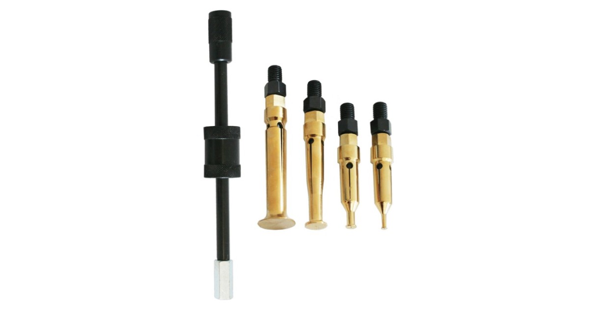 Avarduvad (avasse kinnikiiluvad) keermes-kiilotsaga hülsstõmmitsad sisetõmbamiseks. Laagrivõrud. puksid jne on võimalik eemaldada pinda rikkumata. Komplekt sisaldab hülsstõmmitsaid: 5-8-15-25 mm. liughaamrit.