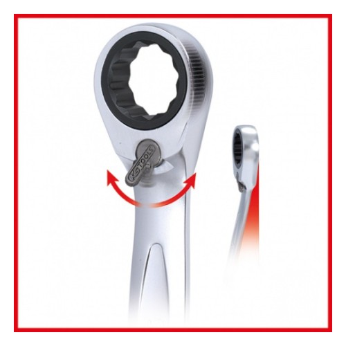 GEARplus tirr silmus-lehtvõtmed. Valmistatud DIN 3113/ISO 3318 kohaselt. Lehtvõtme kaldenurk 15°. Silmusvõtme osa painutatud 15°. Revers lülitiga. 72 hambaga tirr. Poleeritud. Kroomvanaadiumteras.