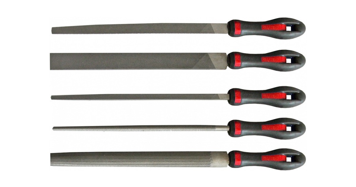 Üldotstarbeliste viilide komplekt. Keskmise rihveldusega (nr 2). Komposiitkäepide. Üldpikkus 370 mm millest tööosa pikkus 250 mm.Komplekt sisaldab: nelikantviil-ümarviil-lapikviil-kolmnurkviil-poolümarviil