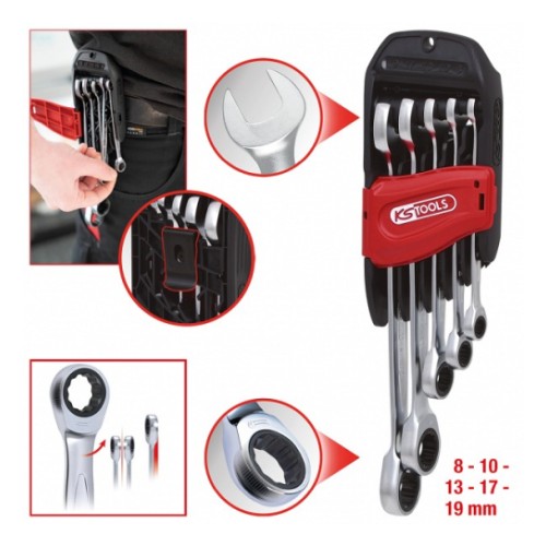 5-Os. Tirr Silmus-Lehtvõtmete Kompl. 8-19Mm Hoidikuga Ks Tools
