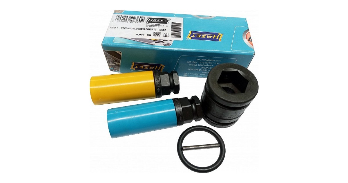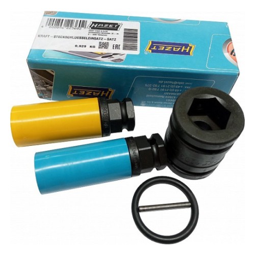 HAZET poolt valmistatud Power Adapter valuvelje löökpadrun. pöörleva plastist kaitsehülsiga. Komplekt on loodud MB Sprinter rataste lahti ja kinni keeramiseks. kuid sobib maasturitele ja teistele pakiautodele. Padruni tagumine osa on kuuskant 24 mm. komplektis on kaasas 24 mm ja 3/4" keeramisadapteri avaga löökpadrun. tänu millele on võimalik kasutada pikka keeramissaba 3/4" ja/või 3/4" löökmutrikeerajat. mille jõud on märgatavalt suurem. Komplektis on pöörleva plasthülsiga padrunid 17 ja 19 mm. lukustusrõngas ja tift. Valmistatud Saksamaal.