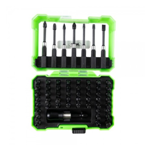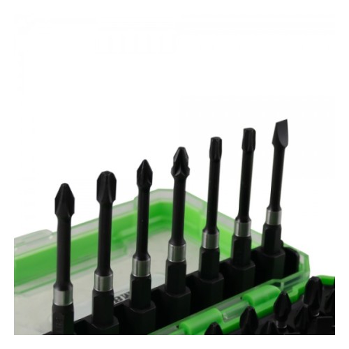 Mugavas plastist kohvris 1/4" kuuskant otsikud. Lühikesed 25 mm ja pikad 65 mm. Sisaldab lapikotsad. PH-ristotsad. PZ-ristotsad. Torx otsad ja avaga Torx otsad. Keeramisadapter 60 mm.