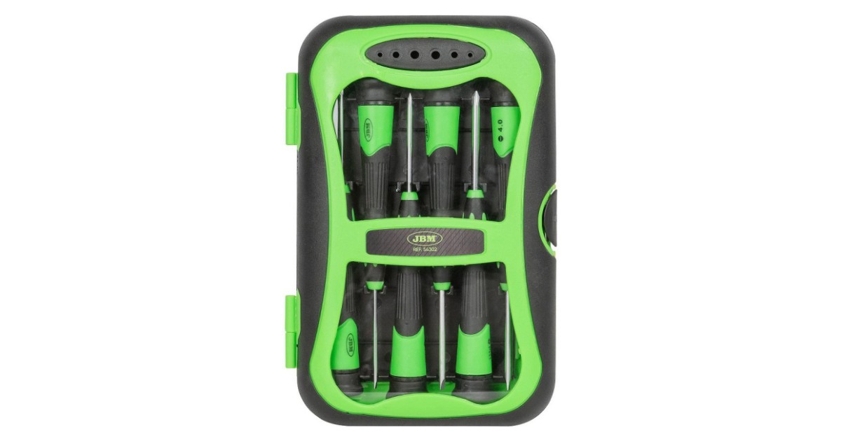 Pöördpeaga mini kruvikeerajate komplekt. Plastkarbis. Komposiidist. libisemiskindel pidemeosa. CrV eriterasest tööosa. spetsiaalkarastusega. Komplekt sisaldab:Lapikkruvikeeraja SL2-SL3-SL4Ristkruvikeeraja PH00-PH0-PH1