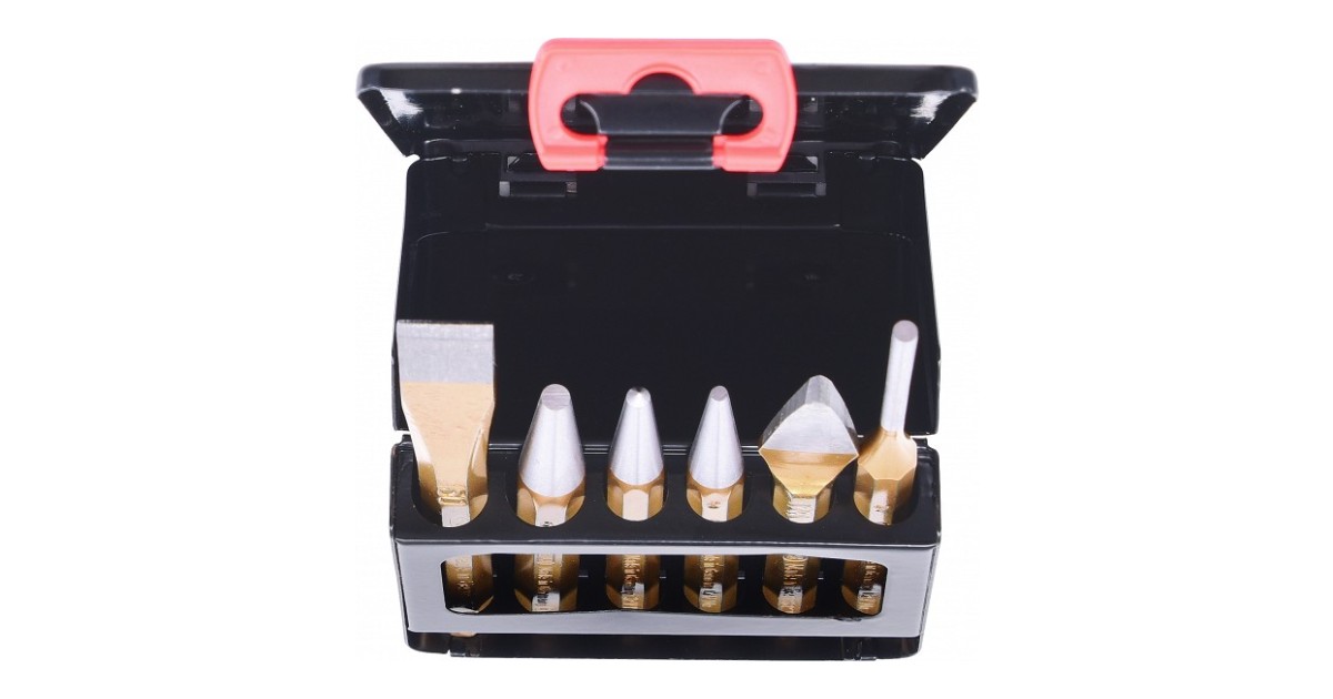 8-kant profiil. Karastatud kogu pikkuses. Tööosa induktiivkarastatud. Korduvteritatav.Komplekt sisaldab:TornKoonustornKärnLapikmeiselTeravotsmeisel