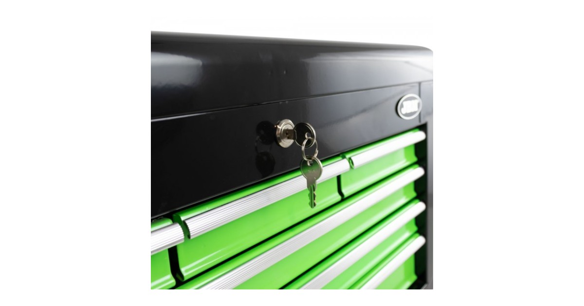 Tugeavst terasest valmistatud tööriistakohver-kapp. Siinidel sahtlitega. hingedel kaanega. 3 väikset sahtlit ja 3 suurt sahtlit. Väikse sahtli laius 170. sügavus 273 mm ja kõrgus 48 mm. Kahe suurema sahtli laius 570 mm. sügavus 273 mm ja kõrgus 48 mm. Ühe suurema sahtli laius 570 mm. sügavus 273 mm ja kõrgus 75.5 mm. Lukustatav. lühematel külgedel kandmise avad. Tugev erivärvkate. Kaal 18.5 kg.