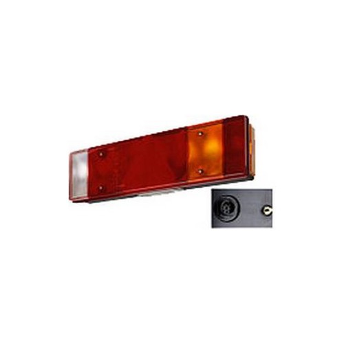 Klassikaline 7-sektsiooniga universaalne haagise tagatuli. sirgete otstega. Tule otsas külje/gabariidituli. Ühendusjuhtme pikkus 100 mm. tule seljal. E-markeeritud. ADR. Laius 464 mm. kõrgus 130 mm. paksus 83 mm. kinnituspoltide (M8) vahe 152 mm. Valmistatud EUs. Pirnid 3 x R5W ja 4 x P21W.