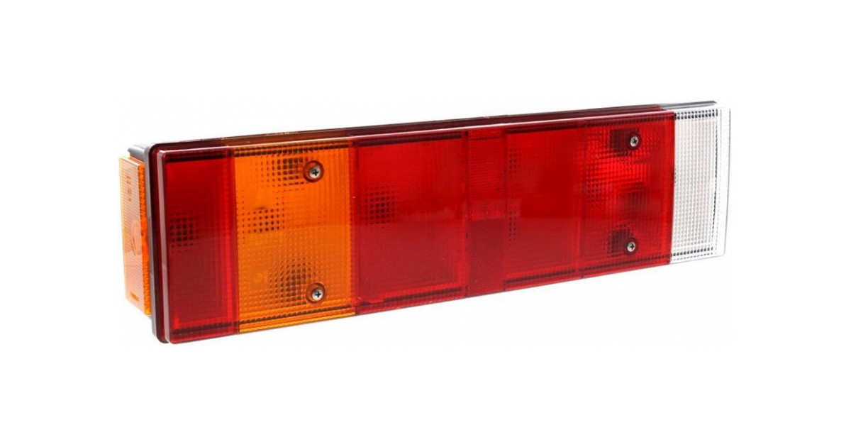 Klassikaline 7-sektsiooniga tagatuli. sirgete otstega. Tule otsas külje/gabariidituli. 6-pin pistik tule tagaseljal. E-markeeritud. ADR. Laius ca 464 mm. kõrgus ca 130 mm. paksus ca 83 mm. kinnituspoltide (M8) vahe 152 mm. Valmistatud EUs. Pirnid 3 x R5W ja 4 x P21W. Sobib AMP 1.5 7-pin pistik 999122850.