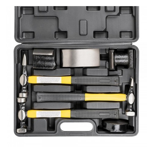 Plastkohvris plekkseppade üldtööriistade komplekt. Komplektis kolm fiibervarrega ca 450 g haamrit (teravots. lapik. pardinokk). Haamritele lisaks neli põhialasit. Sobib hobikasutamiseks või väiketöökotta.