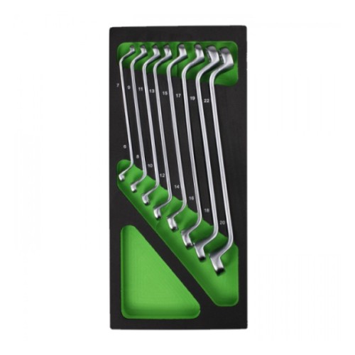 Pehmes PU-paneelis silmus-silmusvõtmete komplekt. Soovi korral saab kasutada tööriistakäru sahtlis. töölaua sahtlis. tööriistakotis või tööriistakohvris. Foam-paneeli mõõdud 175x380 mm. paksus 30 mm.Komplekt sisaldab:Silmus-silmusvõti 6x7-8x9-10x11-12x13-14x15-16x17-18x19-20x22 mm