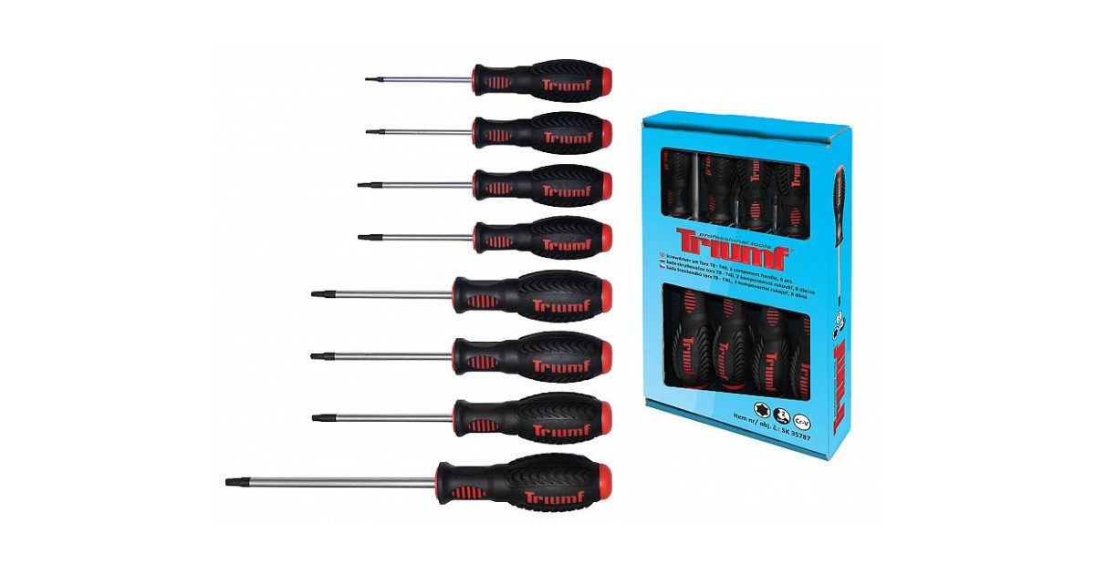 8-Os. Torx Kruvikeerajate Komplekt T8-T40. Torx Kruvikeeraja Pikk T15X300Mm. 2K-Nonslip. Pappkarp Triumf