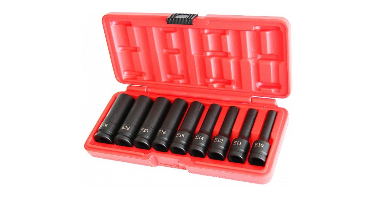 9-Os. 1/2" Pikkade Torx Löökpadrunite Kompl. E10-E24 Triumf