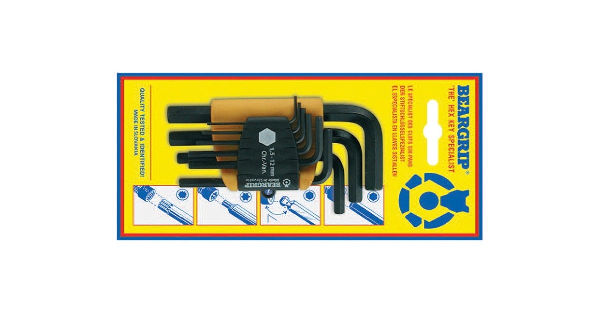 Lühikesed L-kuuskantvõtmed. Valmistatud CrV eriterasest. fosfaaditud pinnatöötlus. Plasthoidikus. Valmistatud Slovakkias.