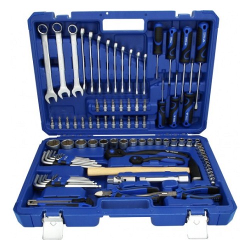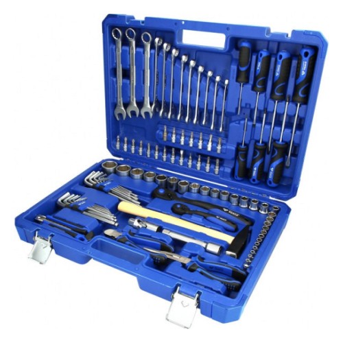 Universaalne ja käepärane tööriistakomplekt. mis sisaldab padruneid. kruvikeerajaid. näpitsaid. L-kuuskante. L-Torxe. leht-silmusvõtmeid. kruvikeerajaid jne. Padrunid 6-kant profiiliga.