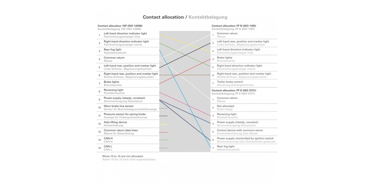 Lühike üleminekuadapter 15P/24 V pistik (ISO 12098) ja 2x7P/24 V pistikupesa (ISO 1185 TYP-N + ISO 3731 TYP-S). Saksa kvaliteet!
