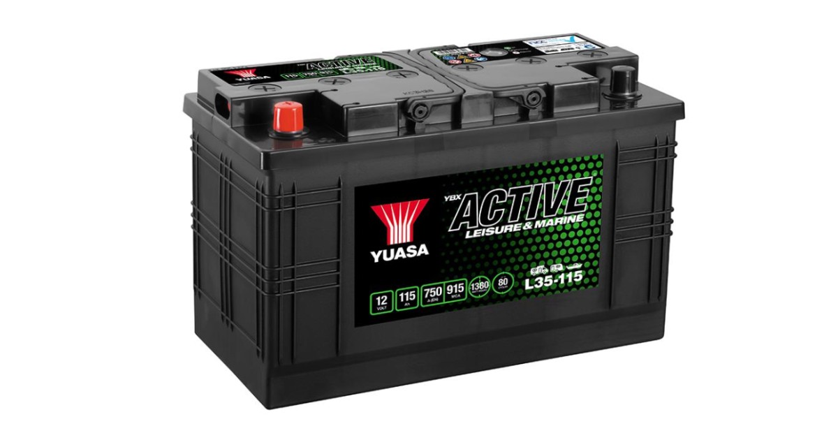 Yuasa Leisure L35-115 käivitusaku koos käepidemetega, laadimistase näidikuga. Mahutavus: 115 Ah, Käivitusvool: 750 A, Pinge: 12 V, Pikkus: 350 mm, Laius: 174 mm, Kõrgus: 224 mm, Klemmid: +/-, Kaal täidetult: 25.4 kg.