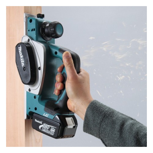 Käepideme optimaalne nurk ja kuju tagavad mugava käeshoidmise ja käsitsemise. Terade vahetus on kiire ja lihtne. Laastu paksuse seadistamine 0.1 mm täpsusega. Turvajalg kaitseb materjali ja lõiketera võimalike kahjustuste eest. Tööriist ja aku on varustatud kaitsesüsteemiga. Süsteem lülitab tööriista toitevoolu automaatselt välja. et pikendada aku eluiga. Töötab 18 V Li-ion akudega (ei toimi 1.3 Ah akuga).