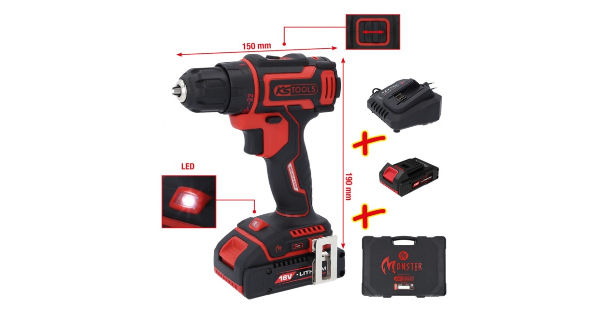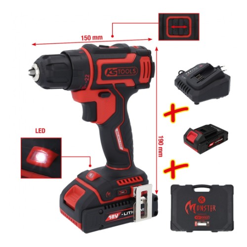 Akutrell "Emonster" 18V 2X2Ah 1-10Mm Akude Ja Laadijaga Ks Tools
