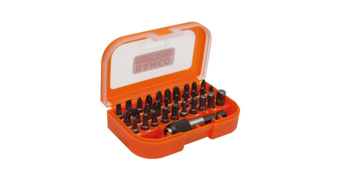 Bahco kruvikeeraja otsikute komplekt 31 tk koos kiirkinnitusega otsiku adapteriga PH, PH2G, PZ, SL, Hex ja TORX