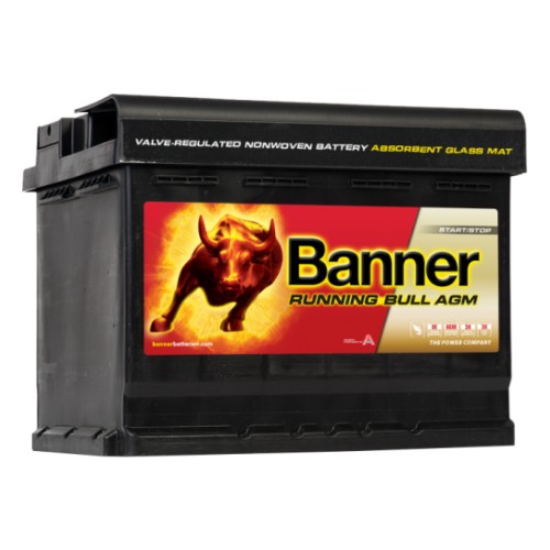 Banner Running Bull AGM akude seeria on Banneri poolt välja töötatud AGM-tehnoloogiaga (VRLA) akud. mida kasutatakse ka Saksa autotootjate autodel originaalpaigaldusel. Tänu Banneri poolt välja töötatud erilisele AGM (Absorbed Glass Mat) materjalile. kätkeb aku endas parimaid käivitusakude omadusi. millele on liidetud juurde uusimad kestvusakude omadused (elektritõstukid. laevad. kaatrid). Sobilik "Start & Stop" süsteemidele. Tulemuseks on ainulaadne toode turul! Akul on topelttsüklilisuse stabiilsus elektritarbijatele. mis ületab kahekordselt kestvusakude kõrgeima standardi E4/M3. EN 50342-1 ning kolmekordselt käivitusakude tsüklilisuskoormuse standardi. Täiesti lekkevaba. Täiesti hooldusvaba. Kõrgeimat vibratsioonikindluse standardit V3. EN 50342-1 ületav. Maksimaalne. koheselt saadaval käivitusvool tänu väiksele sisetakistusele. Võimalik paigaldada kuni 90° nurga alla. Unikaalne toode turul - saab kasutada nii starterakuna kui ka kestvusakuna (nn. vaba-aeg). Valmistatud Austrias!
