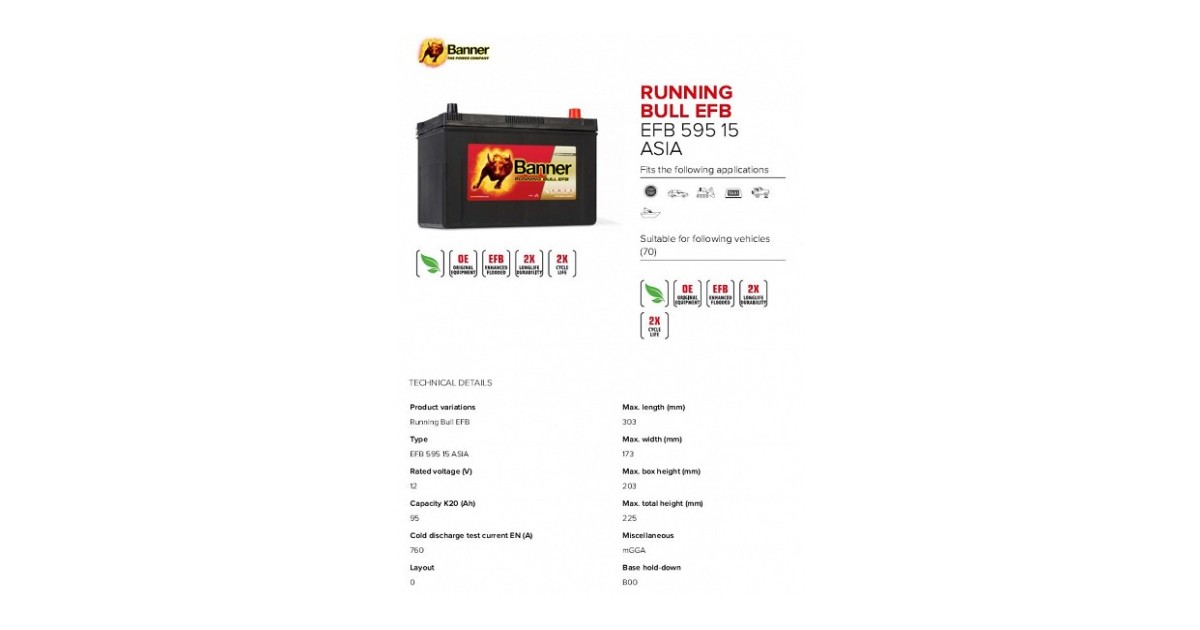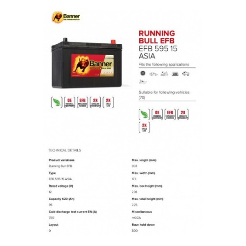 Banner Aku Running Bull Efb 95Ah 304X172X202/225 - + 760A Aasia
