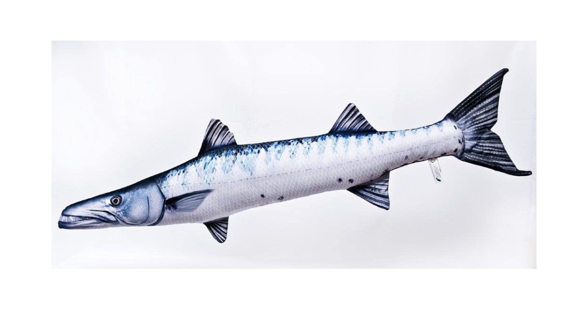Väga loomutruu kalakujuline pehme padi. Materjal: Polüester. Barrakuuda. Pikkus: 110 cm.
