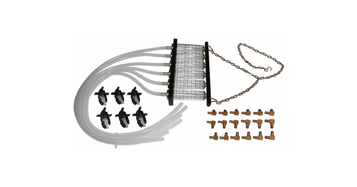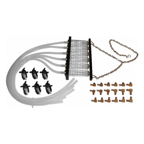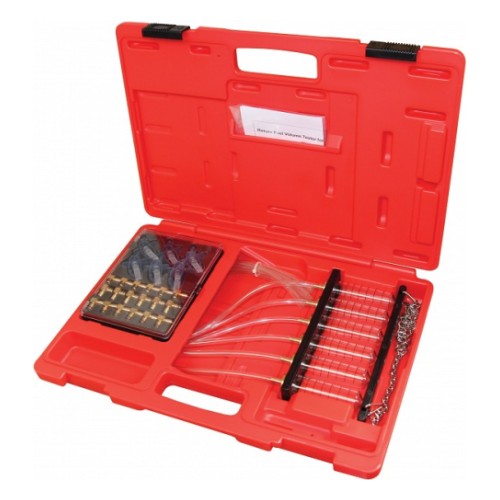 "Common rail" tüüpi diisli toitesüsteemi pihustite kontrollimise komplekt. Max 6-silindrilistele mootoritele. Sisaldab kapillaaranumaid. voolikuid ja adaptereid. Kontrollitakse tagasivoolu kogust eri pihustitel.