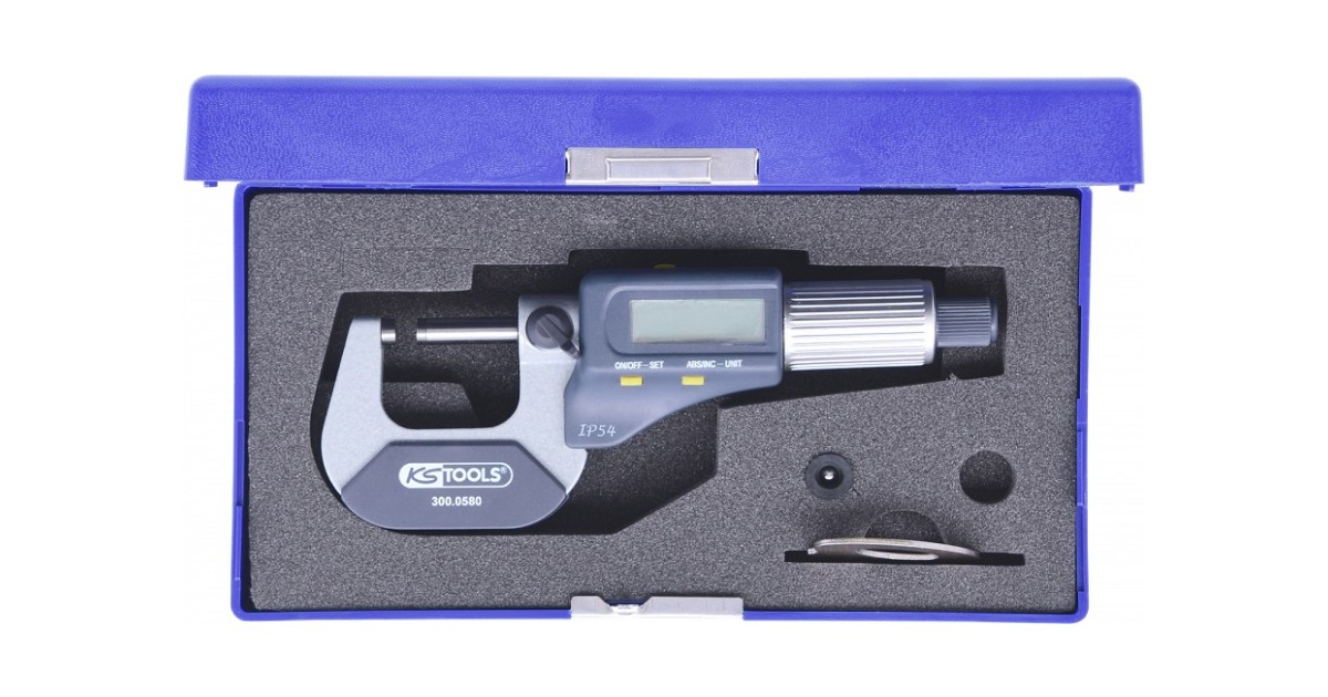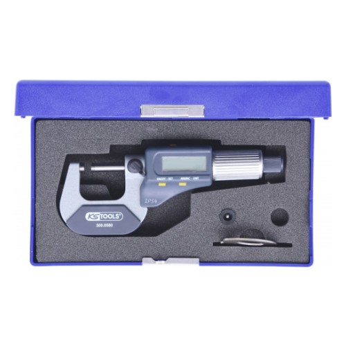 Digitaalse LCD näidikuga välis mikromeeter. Mõõtetäpsus 0.01 mm. DIN. IP54. Roostevabast terasest. Tööpinnad kõvasulamist. Mõõtefikseeringu kruviga.
