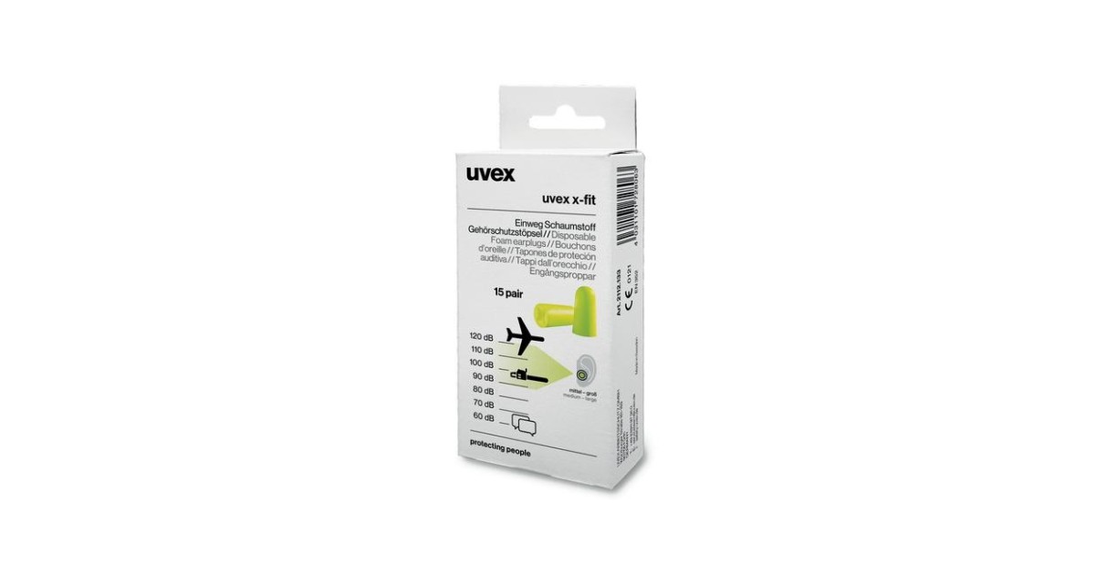 The ergonomically pre-shaped uvex x-fit disposable earplugs provide very strong insulation and are suitable for use in extremely loud environments. The soft foam of the earplugs provides a high level of comfort, even when worn for extended periods.