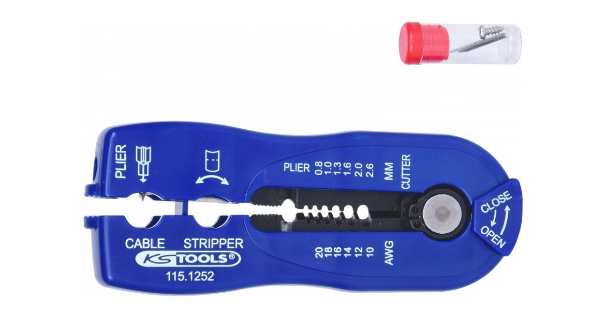 Juhtmekoorija. lõikaja kaks ühes. 0.8-2.6 mm juhtmetele. Kaitselukk. Lõikefunktsioon ja koorimise funktsioon. Komplektis kaasas varutera.