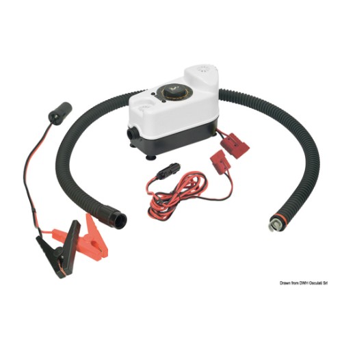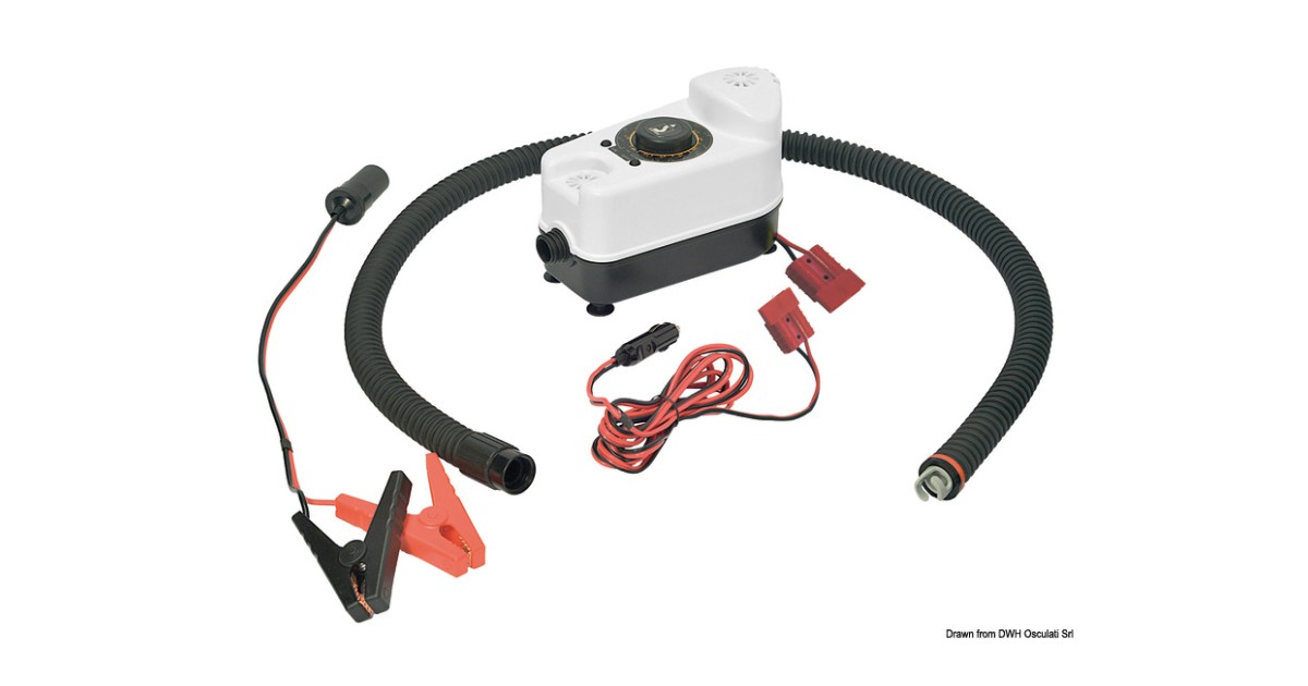 Elektriline õhukompressor, mille tootlikkus on 160 liitrit minutis. Maksimaalne rõhk: 1200 mbar (18 PSI). Seade lõpetab töötamise, kui soovitud rõhk on saavutatud. Komplektis on mugav kandekott, 1,7 meetri pikkune voolik, 3 meetri pikkune toitekaabel, süütepistik ja akuklambrid (12 V). Sobilik SUP-laudade pumpamiseks.