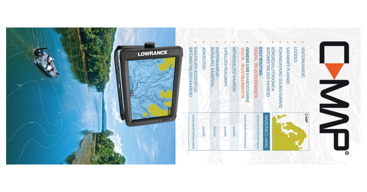 Elektrooniline merekaart C-Map. Regioon: Balti meri ja Taani. Vektorkaardid, looded, sadamate kaardid, kohandatavad sügavusvärvid, kõrgresolutsioonilised batümeetrilised kaardid, Easy routing (tasuta ja registreerimiseta), Genesis Live kaardistamine (tasuta ja registreerimiseta), satelliidi pealiskiht, rasterkaardid kohalikel kaartidel, aerofotod, kasutajate koostatud batümeetrilised kaardid.